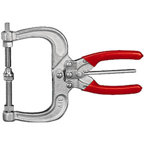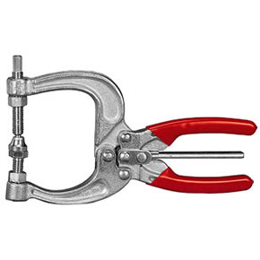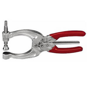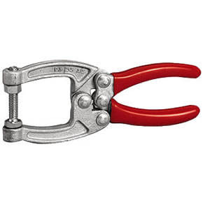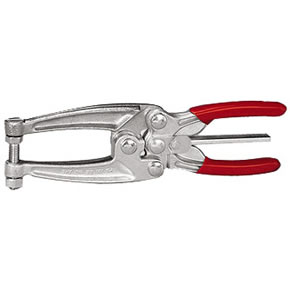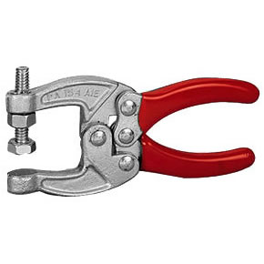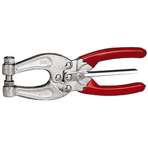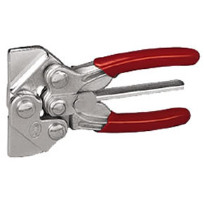 La pinza se bloquea automáticamente al ser cerrada. Para abrirla rápidamente basta con accionar el gatillo central en cualquiera de las dos direcciones. Cuando se requiera una pinza robusta y que supere el mal trato, se debe recurrir a pinzas forjadas en caliente en Acero SAE 1045.